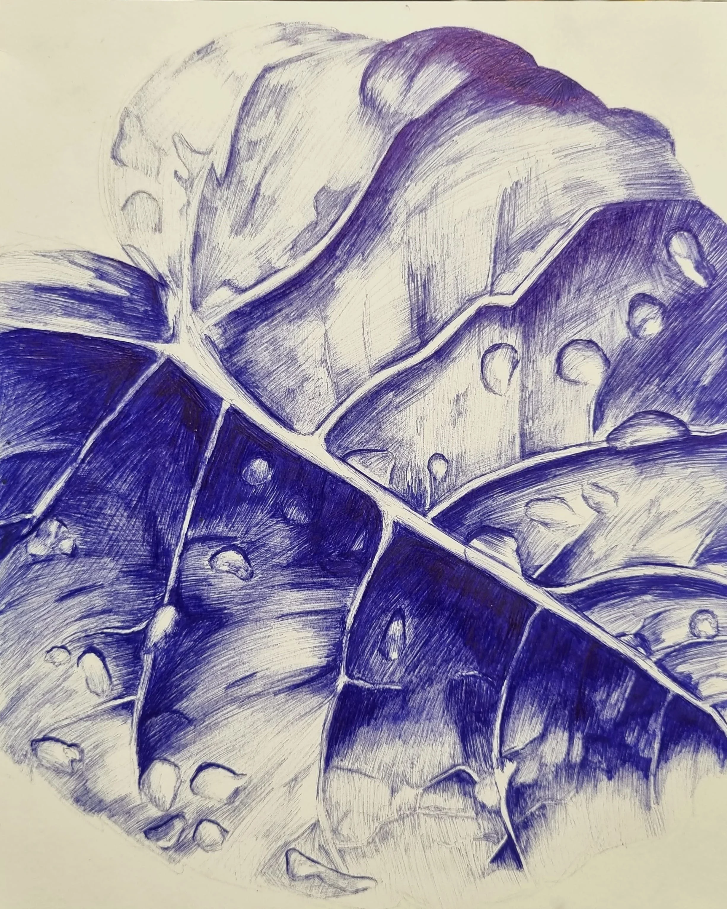 Year 10 - A little selection of my Year 10s work on value - studies of nature using blue and black biro pens. They were encouraged to be bold with their contrast and to explore a range of mark making techniques in order to capture the textures of their chosen organic form.